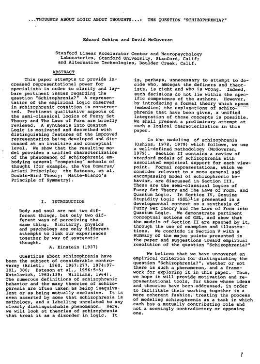 ... thoughts about logic about thoughts ...: the question 'schizophrenia?'