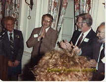 Left to right: Sidney Drell, President, American Physical Society; Eddie Oshins, Stanford University research scientist, and Orlov's scientific representative and editor during Orlov's incarceration; William Cain, President, NYAS; Mrs. Irina Orlov; Peter Schmidt, Committee of Scientists, CERN; Valentin Turchin, exiled Soviet dissident; Yuri F. Orlov; Fleur Strand, President-Elect, NYAS; Joel Lebowitz, Committee of Concerned Scientists and NYAS; Malvin Ruderman, Scientists for Sakharov, Orlov and Shcharansky (SOS); and Heinz Pagels, Executive Director, NYAS. |